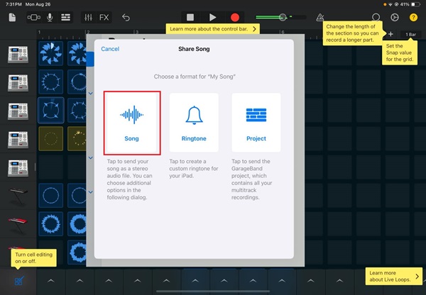 Part 2. How to Save a GarageBand as an MP3 on iOS Device