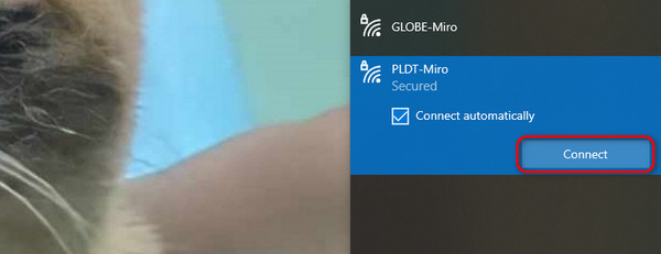 Step 1Please click the Wi-Fi or Globe button at the bottom right. Later, the available network for your computer will appear. Locate the Wi-Fi network that you think contains a strong internet connection. After that, click the Connect button.